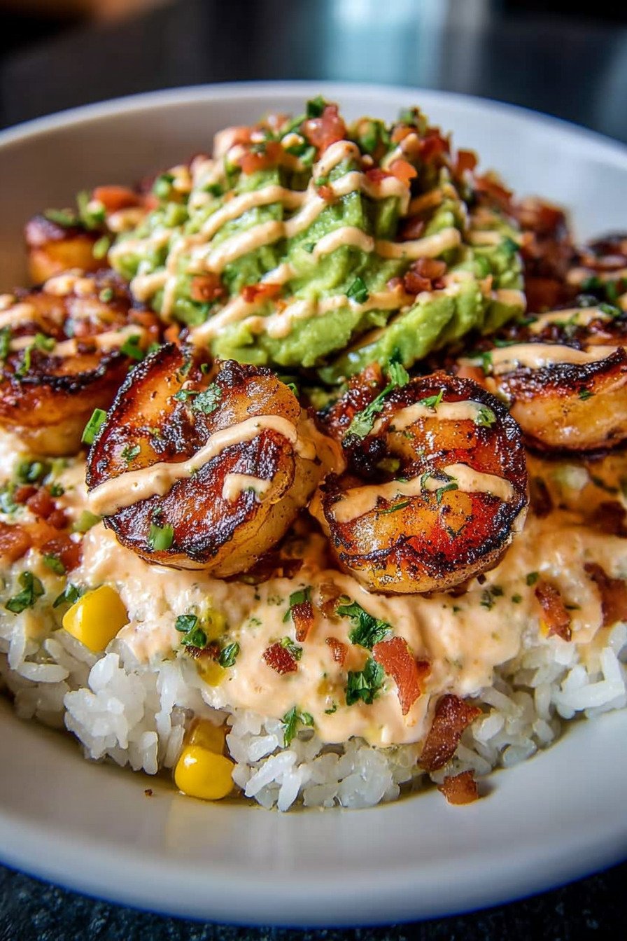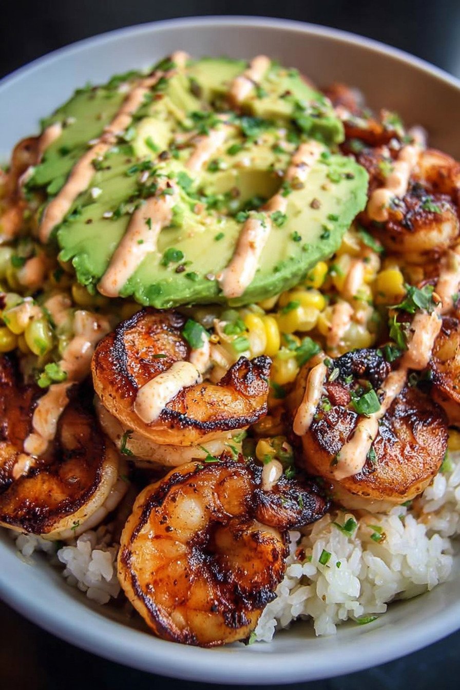 - The bowl combines tender shrimp, noodles, crisp vegetables, and creamy avocado for a balanced dinner.