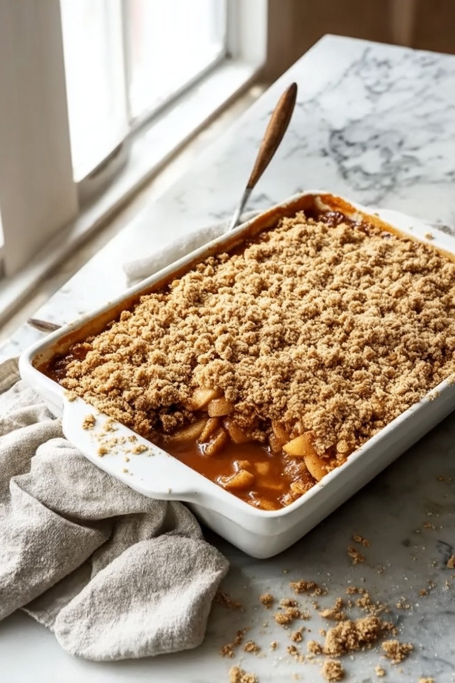 If you plan to travel with it, bake it in a sturdy dish and let it cool slightly before moving it. The topping stays crisp and the filling stays rich.
