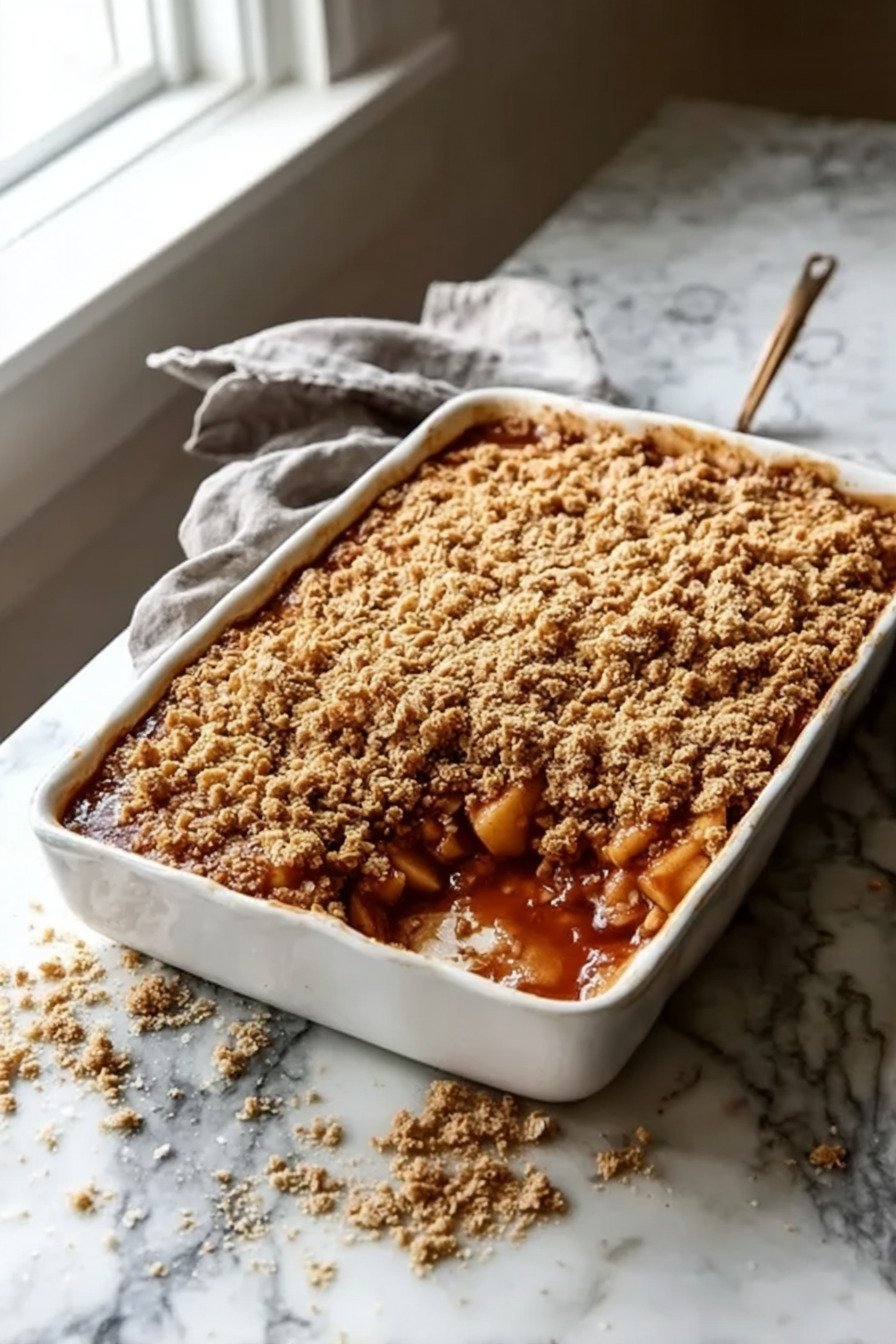 Granulated Sugar Sugar draws out the juices and helps the apples bubble into a glossy layer. You can trim it back if you want a lighter touch, though I find a balanced sweetness makes the apple crumble dessert shine.