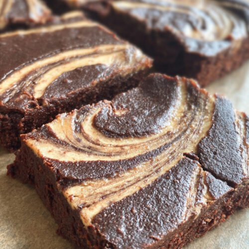Keep the brownies in an airtight container at room temperature for up to three days. They don’t dry out quickly because of the bananas and nut butter. If you live somewhere warm, pop them in the fridge to keep them fresh longer.