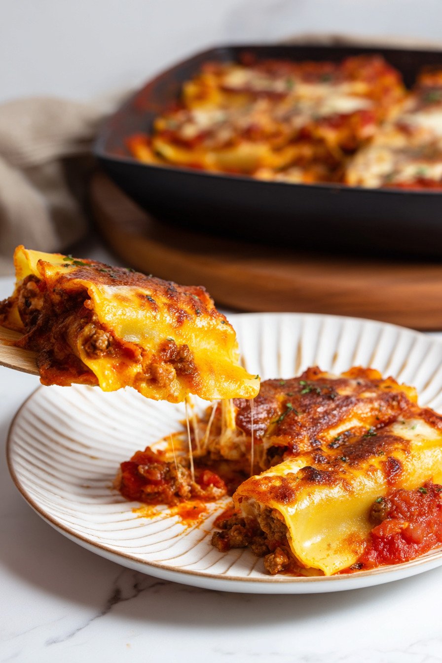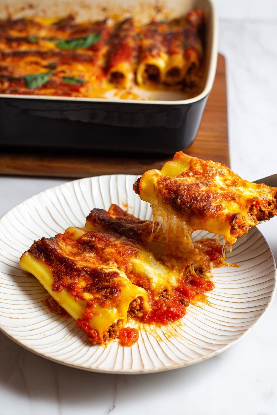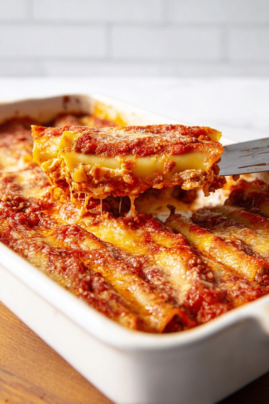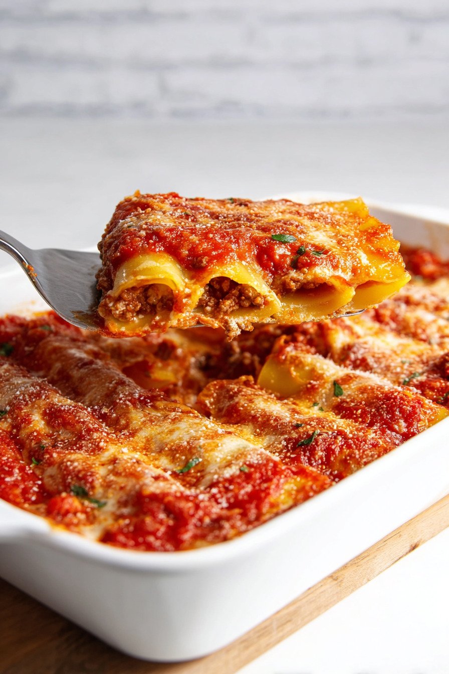 Comfort meets ease in this pan. Tender tubes hold a rich beef and ricotta mix. Marinara wraps each bite. Melted cheese makes a cozy lid. The method stays calm and clear from start to finish.