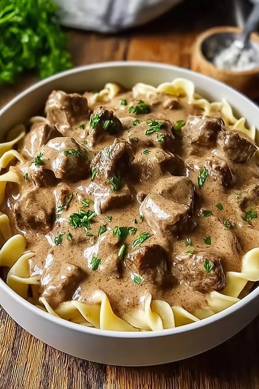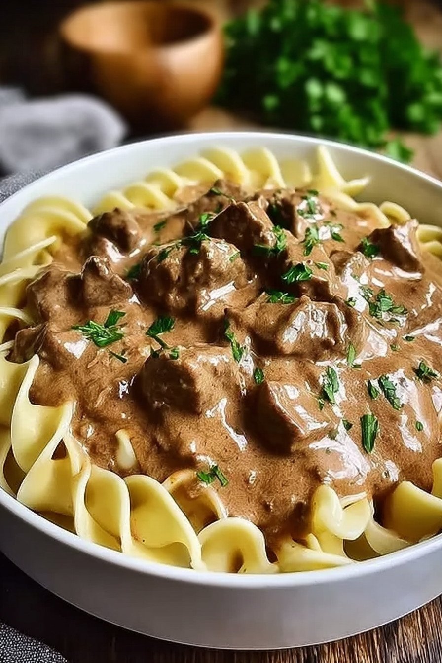 For classic beef stroganoff I keep the sauce gentle and the noodles tender