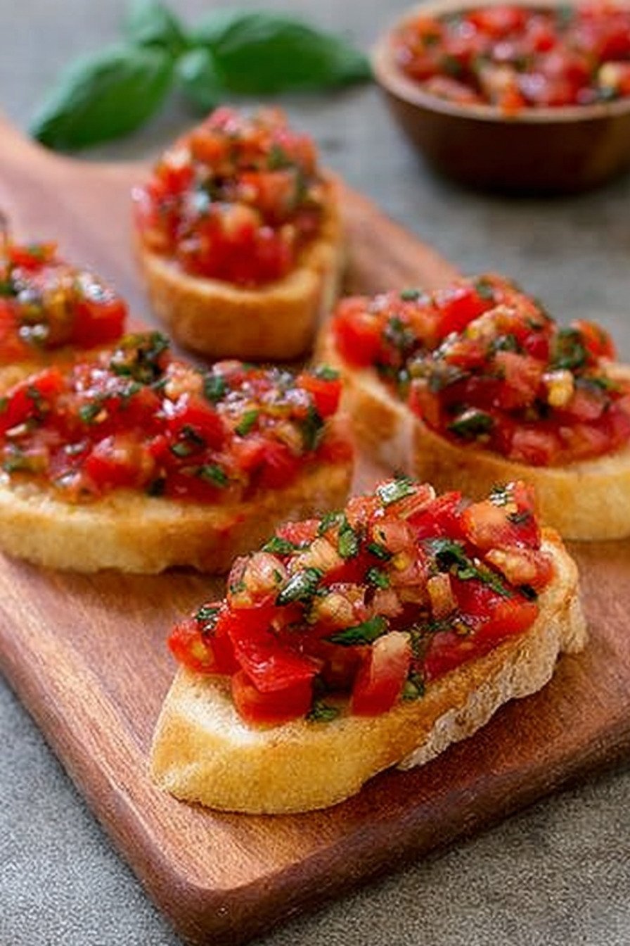 If you want to experiment, try turning this into a mushroom bruschetta recipe by sautéing mushrooms with garlic and olive oil. Alternatively, adding slices of fresh mozzarella creates a rich bruschetta recipe mozzarella variation that pairs beautifully with the tomatoes.