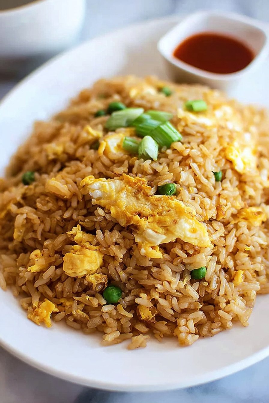 You get a fried rice recipe that fits busy nights. Cold rice gives clean grains. Simple sauce gives balance. Scallion and pea give color and snap.
