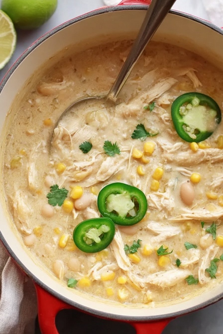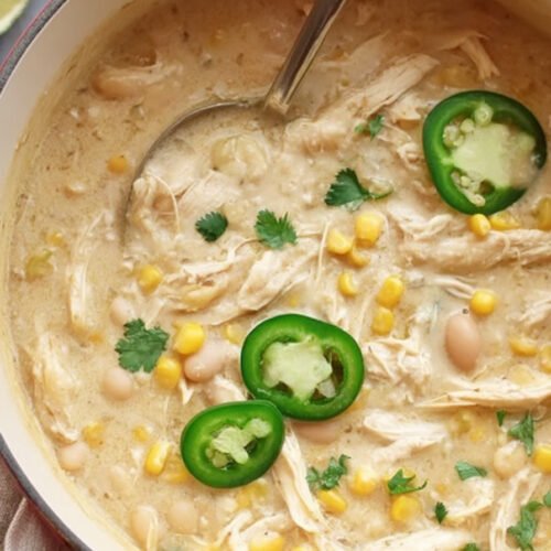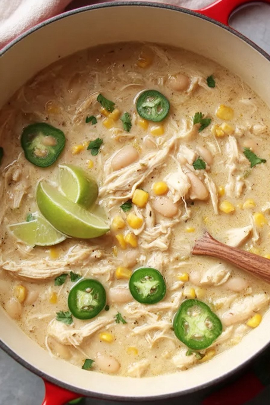 Because this dish fits beautifully into Chicken Recipes, it is a smart option for anyone who wants a dependable dinner built around tender chicken, beans, and bold seasoning. The creamy broth gives it the comfort-food appeal of the best white chicken chili recipe, while the straightforward ingredient list keeps it practical. It also works well for cooks who usually make a chicken chili recipe crockpot style, since the flavors in this version are just as adaptable and family-friendly.