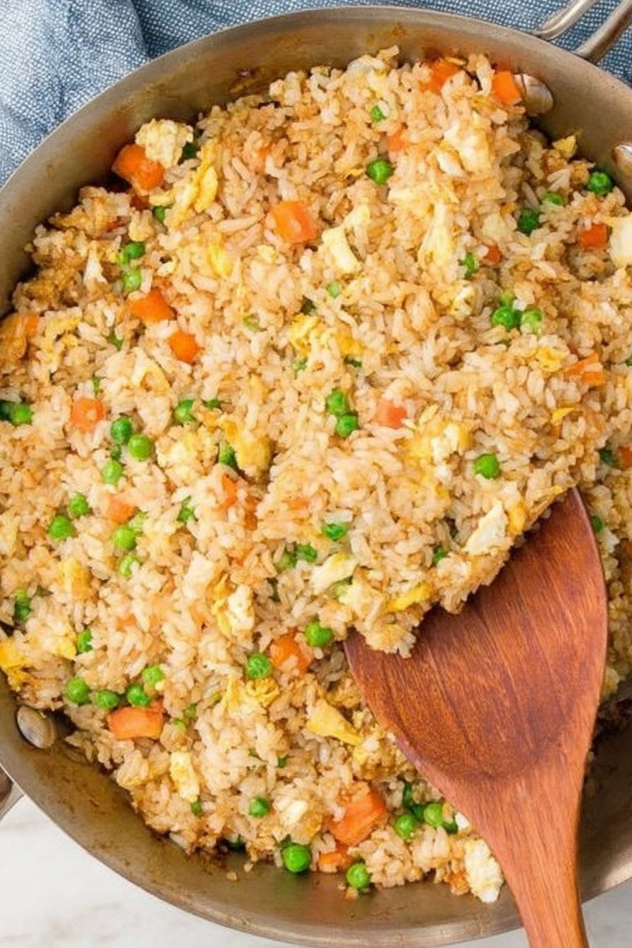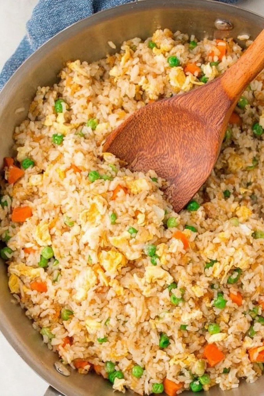 Eggs slide in and set. Peas and carrots bring color and a little sweet bite. Soy brings depth. A few drops of sesame oil round the edges. If you search fried rice recipes or you want a recipe for fried rice that never lets you down, this one earns trust with steady steps and repeat wins.