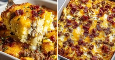 Breakfast Casserole with Sausage, Bacon, and Cheese