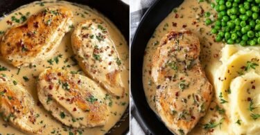 Garlic Parmesan Chicken Breast Dinner in a Creamy Skillet Sauce
