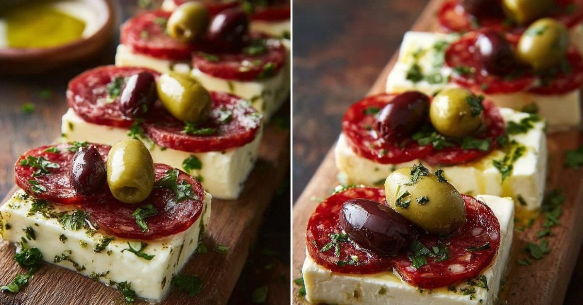 Easy Marinated Cheese with Salami and Olives Appetizer Recipes