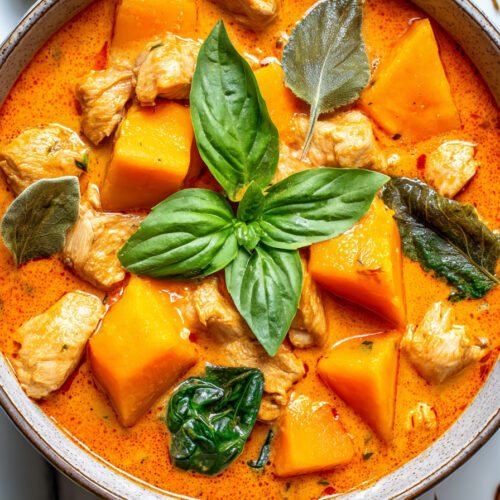 This curry balances flavor and comfort. You get tender chicken, sweet pumpkin, and coconut milk blending into a creamy sauce. It feels hearty, yet not heavy.