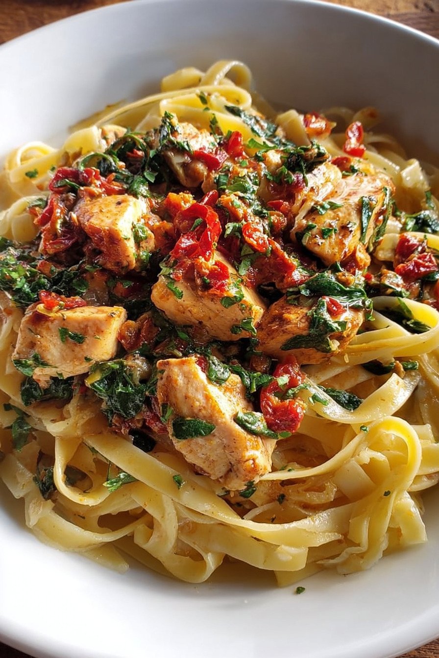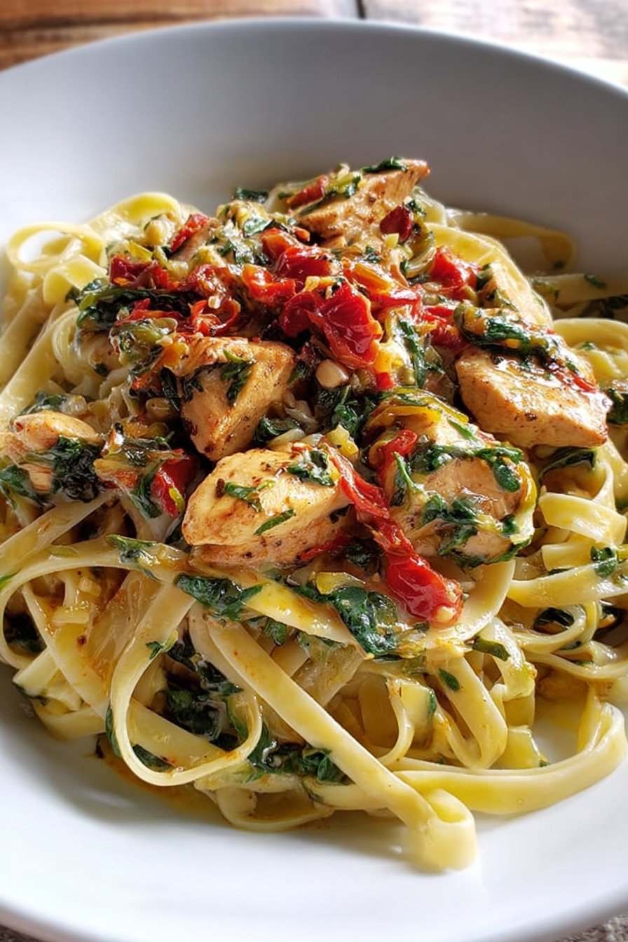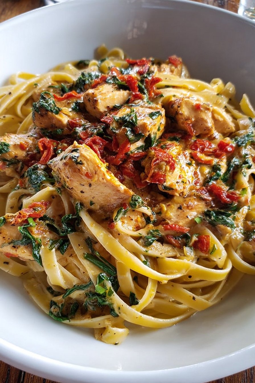 I cook this Tuscan chicken pasta when the day runs fast and my brain asks for soft sauce and tender bites. It sits in the family of Chicken Pasta Recipes and it makes sense for busy nights. One pan. Warm steam. Bright tomato. Creamy cheese. Spinach that melts into the pot. I stir and the kitchen smells like summer and comfort at the same time. We keep it simple and friendly. I start with chicken and a little garlic. I pour tomatoes and broth. Pasta goes in and soaks up the good stuff. The finish feels lush and kind. It lands between Alfredo Pasta Recipes and the Best Pasta Recipes that live on our table. It fits the joy of 1 Pot Meals when we need less mess and more flavor. Use chicken breast or cut from boneless skinless chicken thigh recipes. The sauce hugs every piece. The pasta stays with a gentle bite. We eat and talk. We laugh at the little splatters on the stove. Baked chicken or baked pasta recipes have a place here on calm weekends, yet on a weeknight this one pan plan wins with ease.