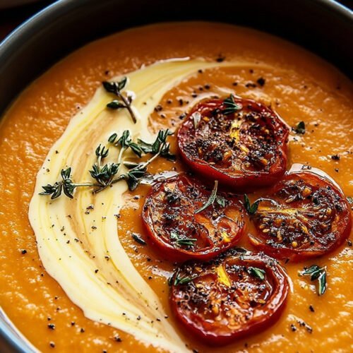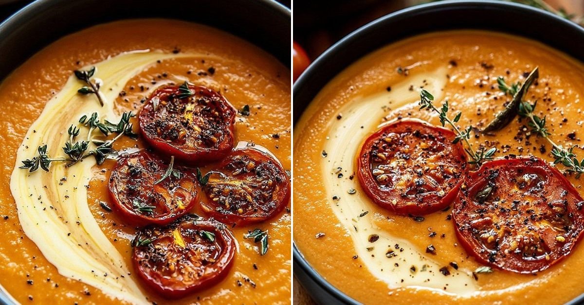 There’s something about tomato soup that feels like a hug in a bowl. When I first made this creamy roasted garlic tomato soup, I wasn’t expecting it to taste like comfort food recipes straight from my childhood. But oh, it did. The roasted tomatoes deepen in flavor, and the garlic softens into something buttery and mellow. The cream rounds it all out into a silky spoonful you don’t want to end. We’ve all had tomato soup from a can, right? And maybe it got the job done on a busy night. But this one—this roasted tomato soup—is different. It has character. It smells like the kitchen is alive, like you’ve been slow cooking all day even if you really only spent a little time prepping. Roasted tomato recipes like this turn simple ingredients into something worth savoring. Tomato soup recipes can sometimes feel too light or too heavy, but this one finds the balance. I like to call it my go-to comfort soup recipe. It even plays nice with a golden grilled cheese on the side—seriously, is there a better duo? Some nights, I swap in chicken stock instead of veggie stock and it instantly becomes a chicken tomato soup that feels hearty enough to be dinner on its own. Creamy soup recipes easy like this don’t need much, just fresh tomatoes, garlic, and a little patience. And yes, a sprinkle of parmesan on top is non-negotiable.