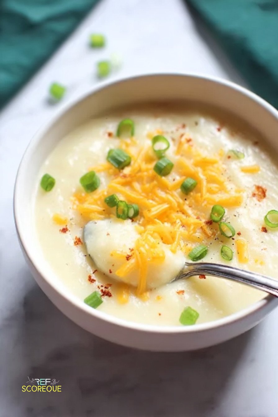 We use potatoes broth cream cheese and butter. The texture turns silky and thick without flour. The taste leans savory with a gentle tang from the cream cheese. You mash a few cubes to build body. You can blend a cup if you want it extra smooth. Either path works.