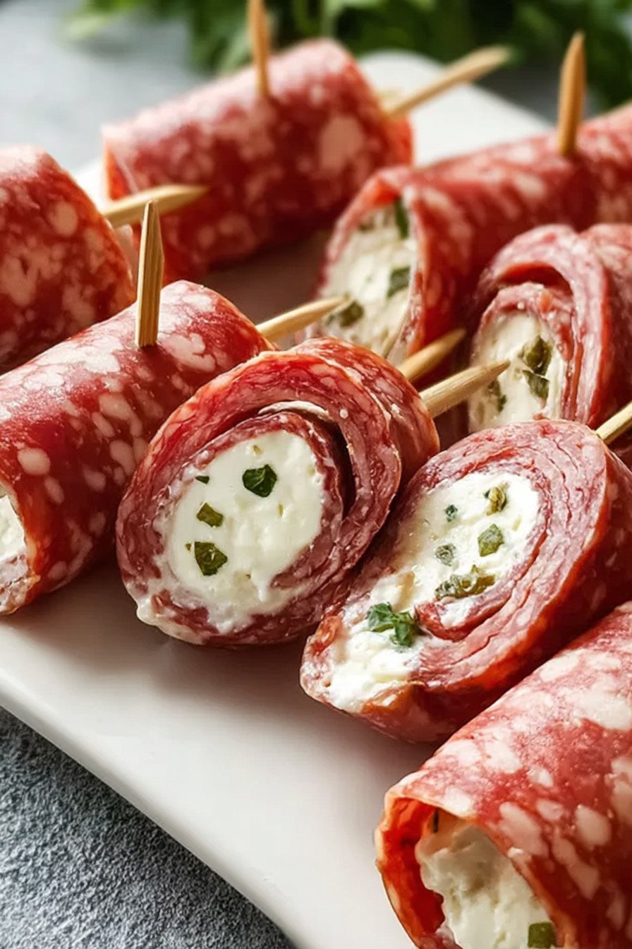 - Cream Cheese Salami Roll Ups