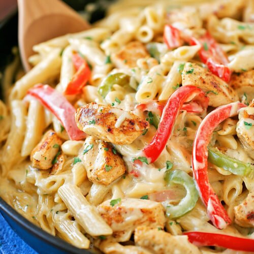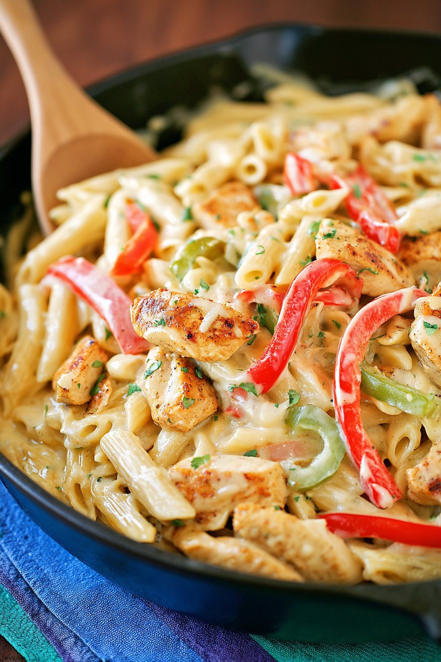 Pasta Pasta makes this meal extra comforting and helps soak up every bit of the rich Alfredo sauce. It turns the dish into a true fajita pasta recipe that feels substantial, family-friendly, and ideal for dinner.