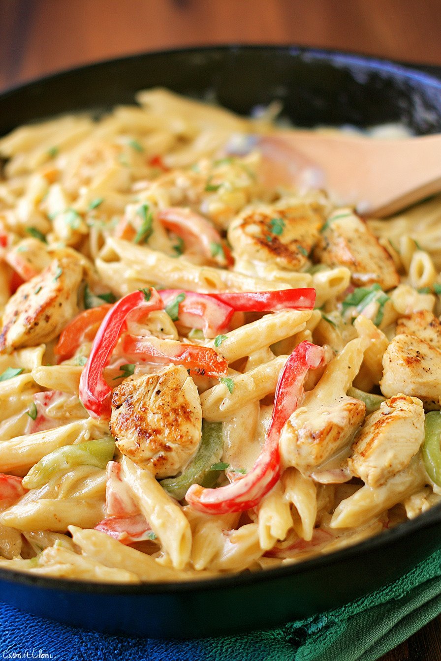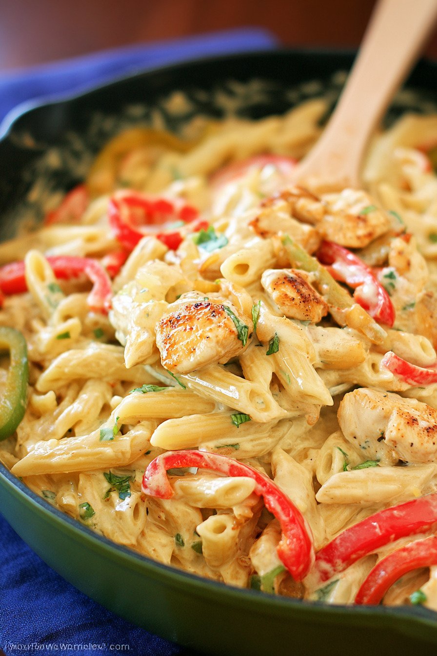 2) Easy Chicken Fajita Pasta Alfredo Recipe