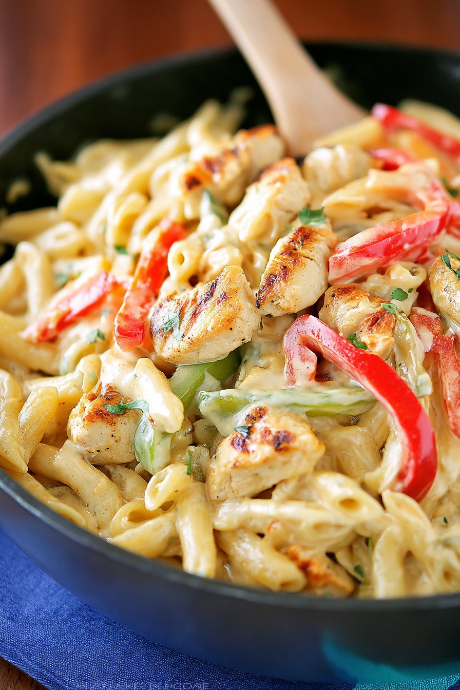• Easy Chicken Fajita Pasta Alfredo Recipe