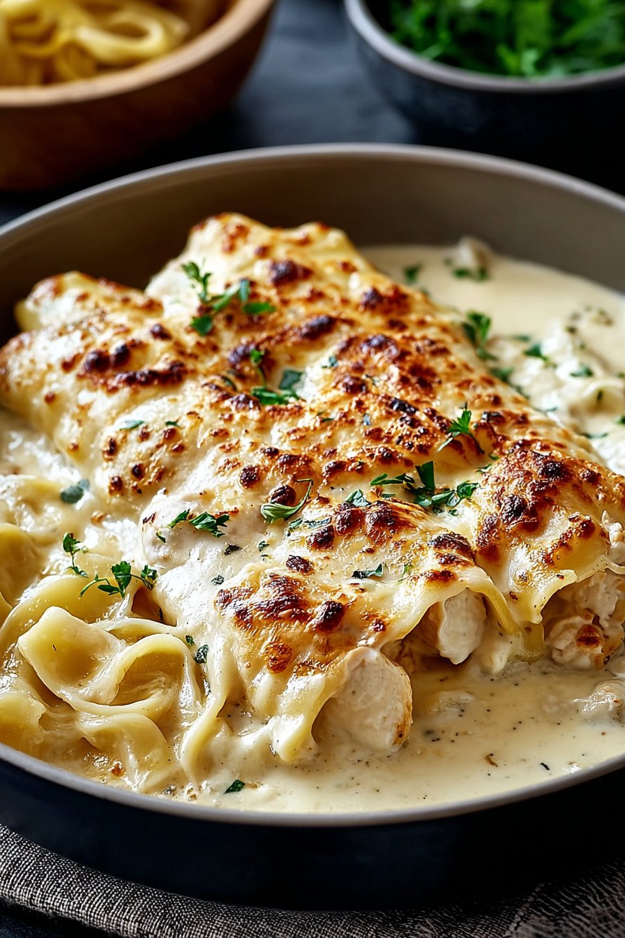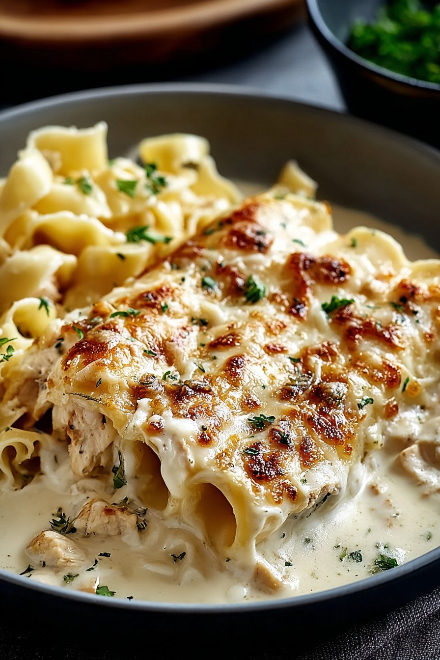 Creamy Chicken Manicotti Alfredo Recipe – Easy & Cheesy Pasta