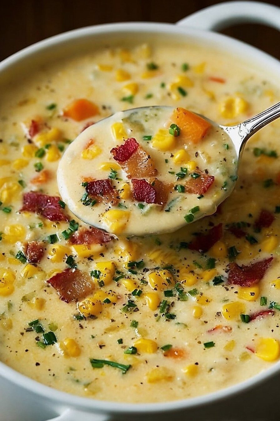 I make this chowder when the day feels long and the air sits cold. Sweet corn meets tender potato. Cream wraps each spoon with quiet comfort. The pot hums. Steam lifts. I taste and grin. It feels a bit like a sweater for dinner. We learned the trick during a storm. Lights blinked. We chopped fast and joked about camping in the living room. The broth simmered. Thyme drifted up and the room relaxed. Vegetarian Soup Recipes line my notebook and this one holds a top spot next to a scribble that says 13 bean soup recipe and another that says 3 bean salad recipe healthy. I keep notes for broccoli soup crockpot and brĂ³coli cheddar soup for the next slow night. A friend swears by baked french onion soup when the wind howls so I filed that in the same folder. This chowder tastes sweet and creamy with a little bite from onion and pepper. Each spoon brings soft potato and juicy corn. It is easy to cook and even easier to eat. I serve a warm roll and a small salad and call it good. If you want a gentle wellness bowl I whisper about antiiinflammatory soup too. Tonight we go with corn and we do not regret it.