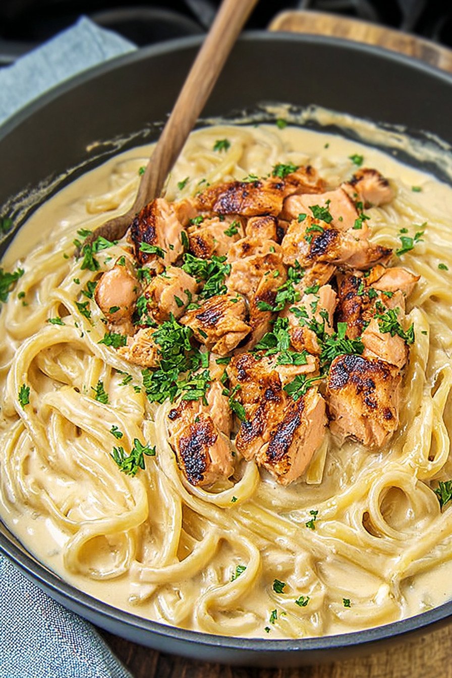If you love comforting seafood dinners, this creamy salmon pasta is about to become one of your favorite salmon recipes. The dish combines tender flakes of salmon with a rich, velvety cream sauce and perfectly cooked pasta, creating a meal that feels elegant yet incredibly easy to prepare. Creamy pasta dishes are always a crowd favorite, and this recipe fits perfectly into any collection of creamy pasta recipes for busy weeknights or cozy family dinners.