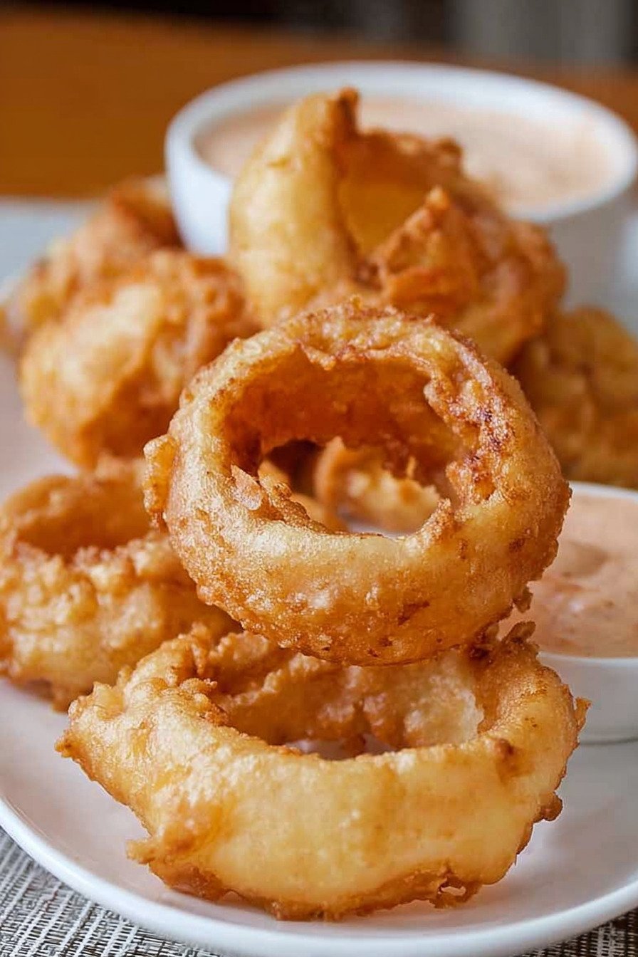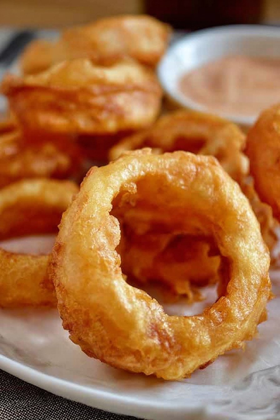 Beer Cold beer is what gives these onion rings their light, airy texture. The carbonation helps the batter puff slightly as it fries, which is key to a crispy onion rings recipe.
