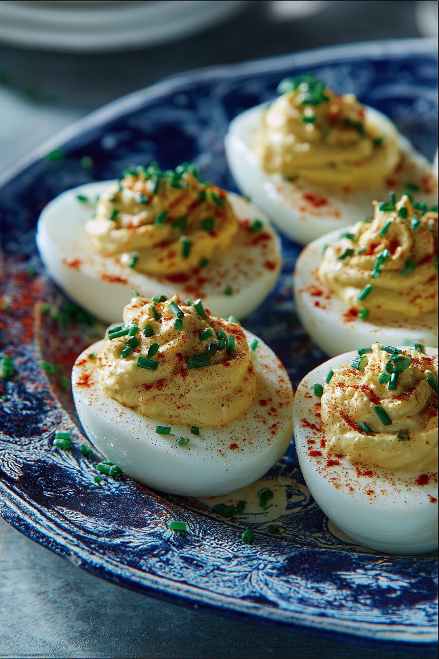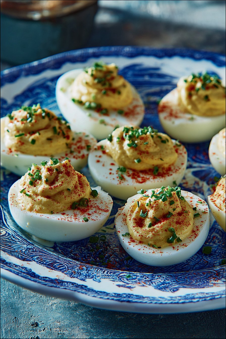 White vinegar A small splash tightens the flavor and helps the yolks stay smooth. The taste stays gentle. Think clean not sharp.