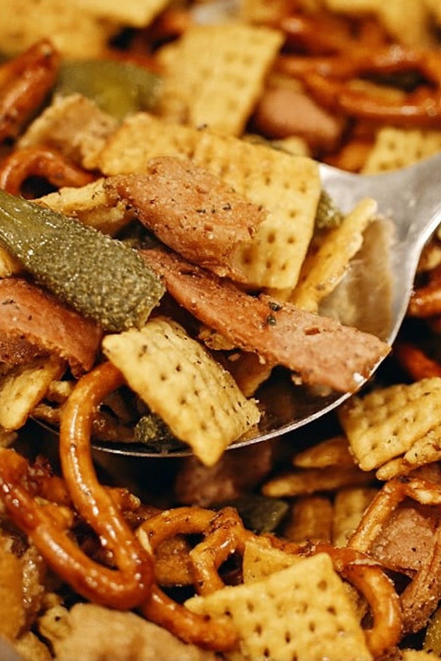 Dill Pickle Juice The secret ingredient that gives this recipe its signature tangy flavor. It infuses the entire mix with that unmistakable pickle taste that makes it one of the most unique party snacks.
