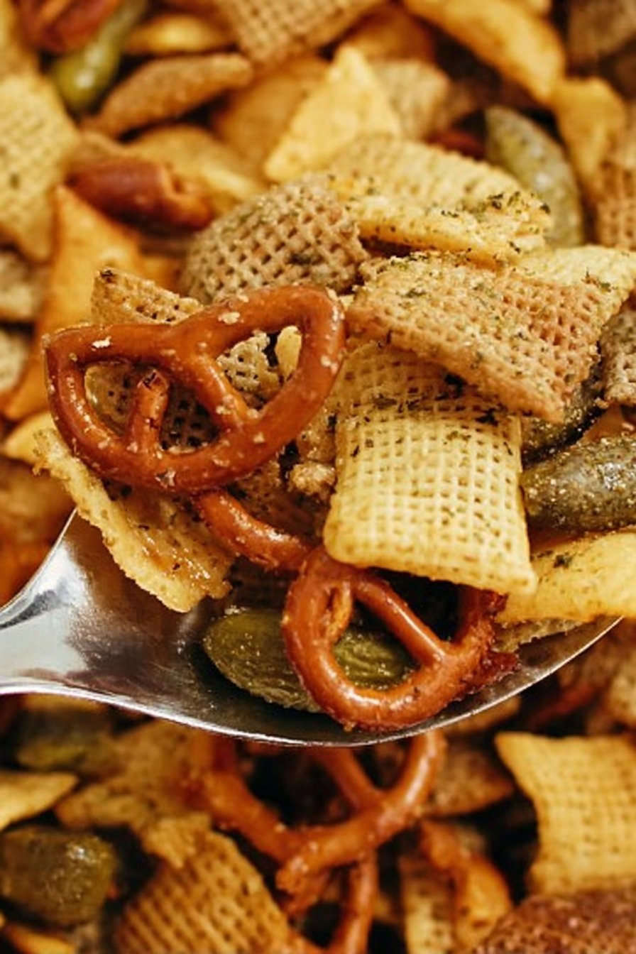 This savory party mix is ideal for preparing ahead of time, especially if you’re planning for parties or gatherings. Once baked and cooled, it maintains its crunch for several days when stored properly.