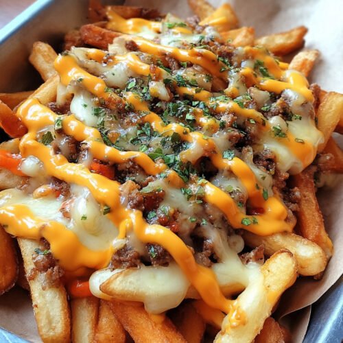 If you’re planning for a party, bake the fries first and reheat them at 400°F for about 10 minutes before adding cheese and toppings. They’ll come back to life with a crisp edge and still hold the flavors well.