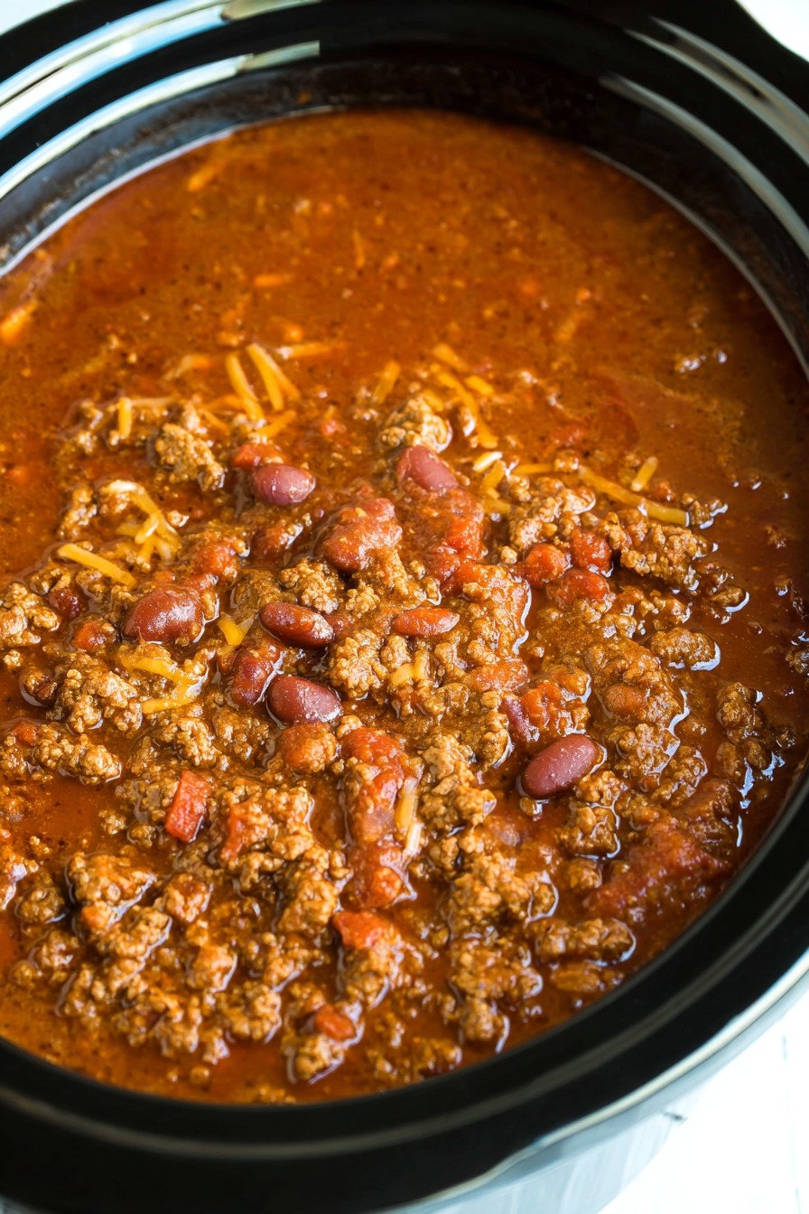 Store leftover homemade chili recipe crockpot in an airtight container in the refrigerator for up to 4 days. Reheat gently on the stovetop or in the microwave, adding a splash of water if needed to loosen the consistency.