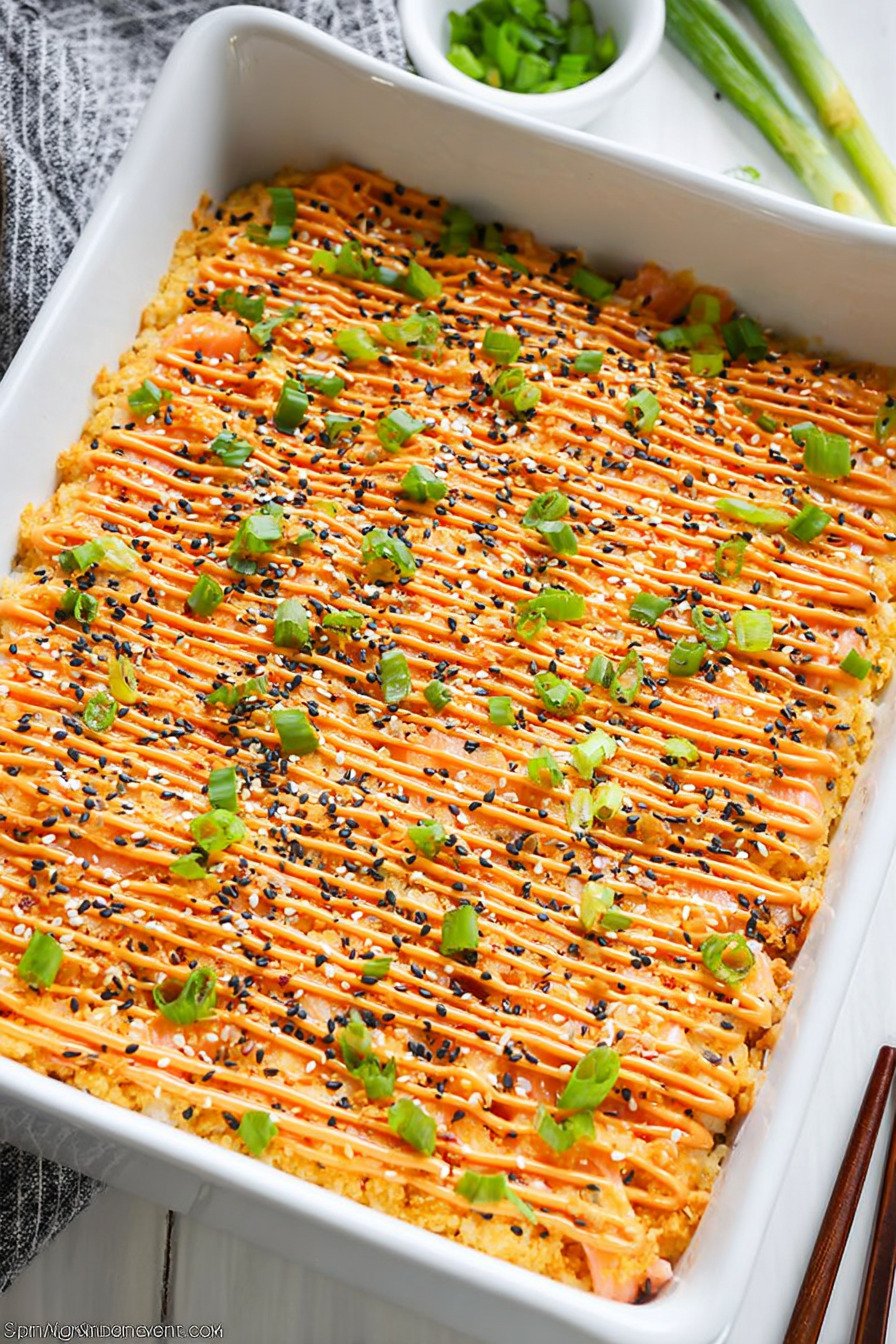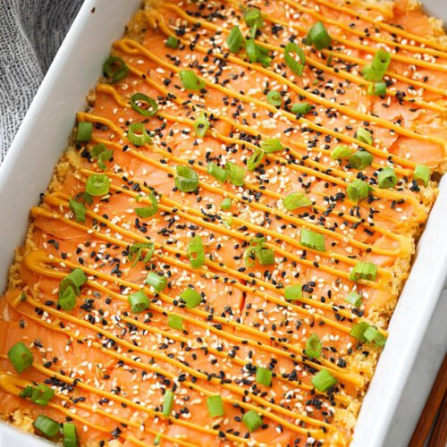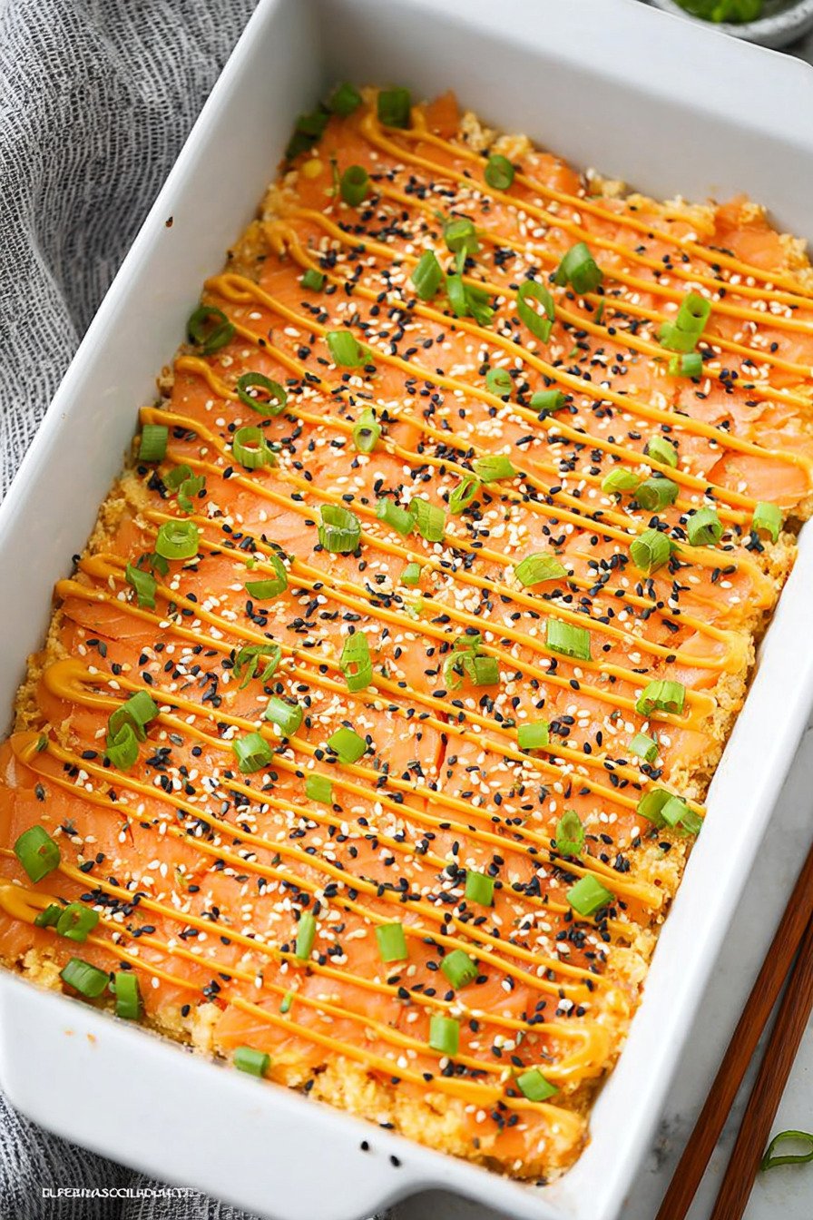 Easy Salmon Sushi Bake – Creamy Asian Style Baked Salmon Dish