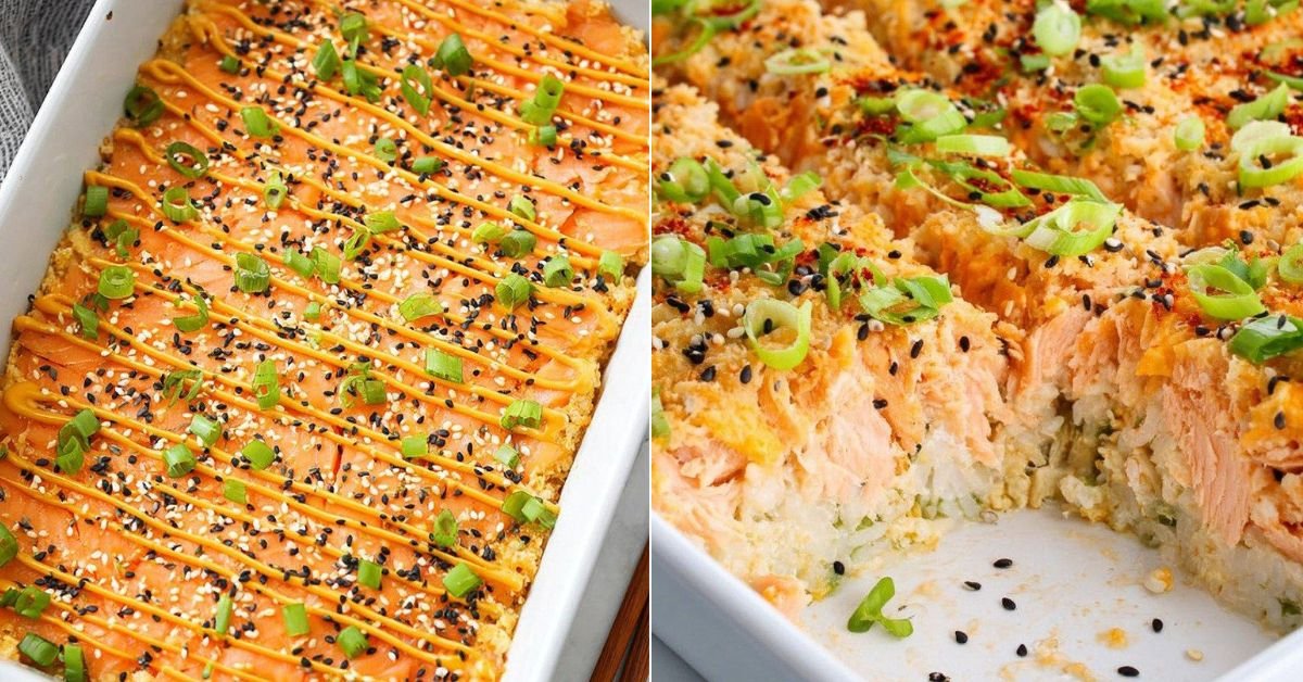 Easy Salmon Sushi Bake – Creamy Asian Style Baked Salmon Dish