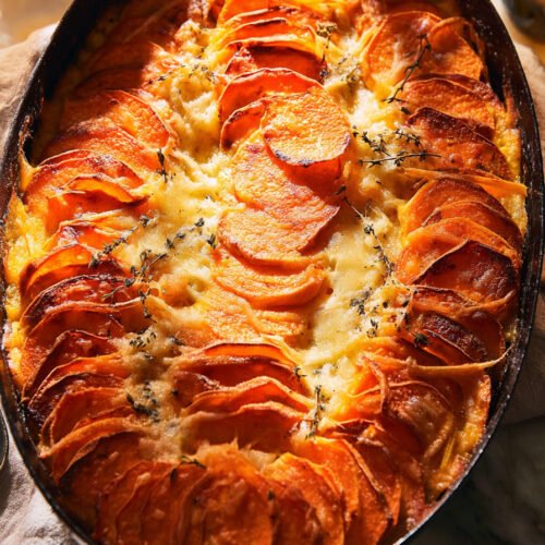 I keep this one in my back pocket for busy evenings. Sweet potato recipes carry comfort and color. Two lines of prep get you there slice the potatoes and warm the cream. From there the oven does steady work. You get a crust on top and tender layers under the surface.