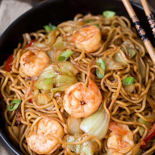 Try not to overcook the shrimp, since they only need a short time in the pan. As soon as they turn pink and opaque, take them out so they stay juicy. If you want to switch things up, you can absolutely borrow inspiration from a chicken chow mein recipe by using thinly sliced chicken, or lean into a beef chow mein recipe variation with quick-cooking strips of beef.