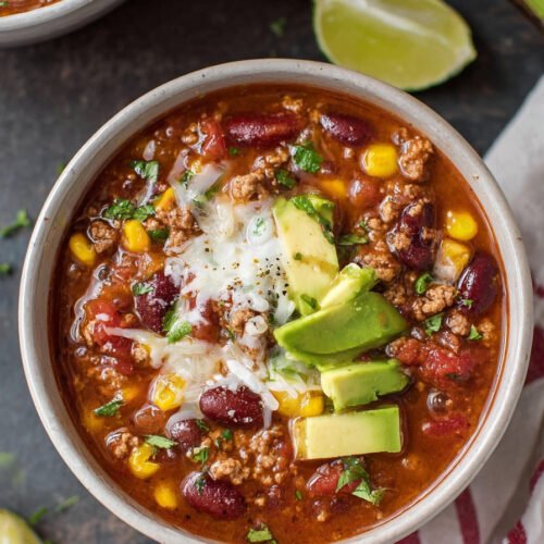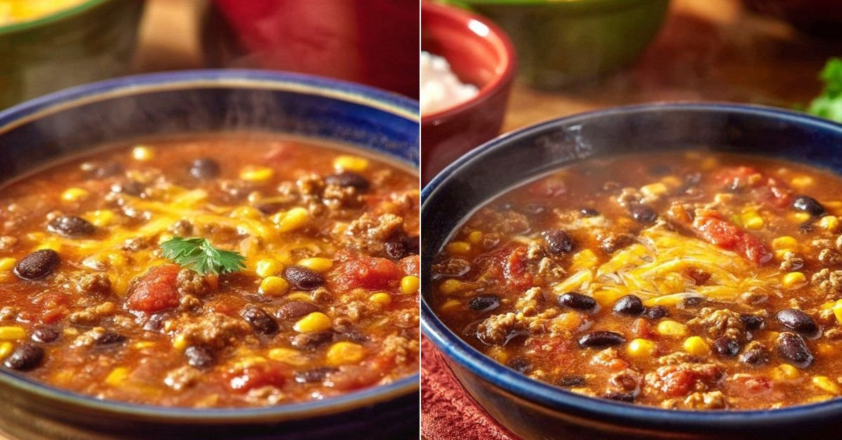 This soup recipe keeps steps short and clear. We cook beef, add beans and corn, pour tomatoes, then let the pot simmer. The flavors blend fast. You taste spice, sweet corn, and soft beans in every bite. It feels hearty without feeling heavy.