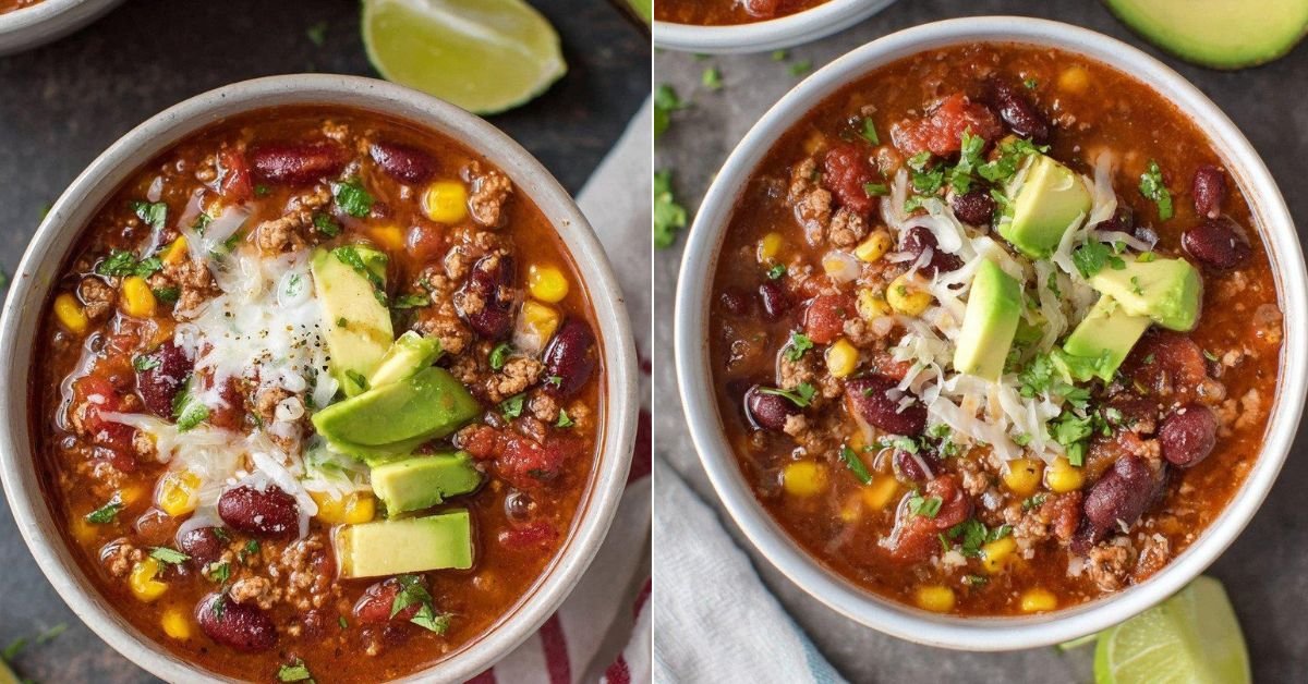 We top each bowl with cheese, chips, or avocado. Every spoonful tastes like tacos in soup form. If you search for taco recipes that feel relaxed and honest, this one belongs in your kitchen.