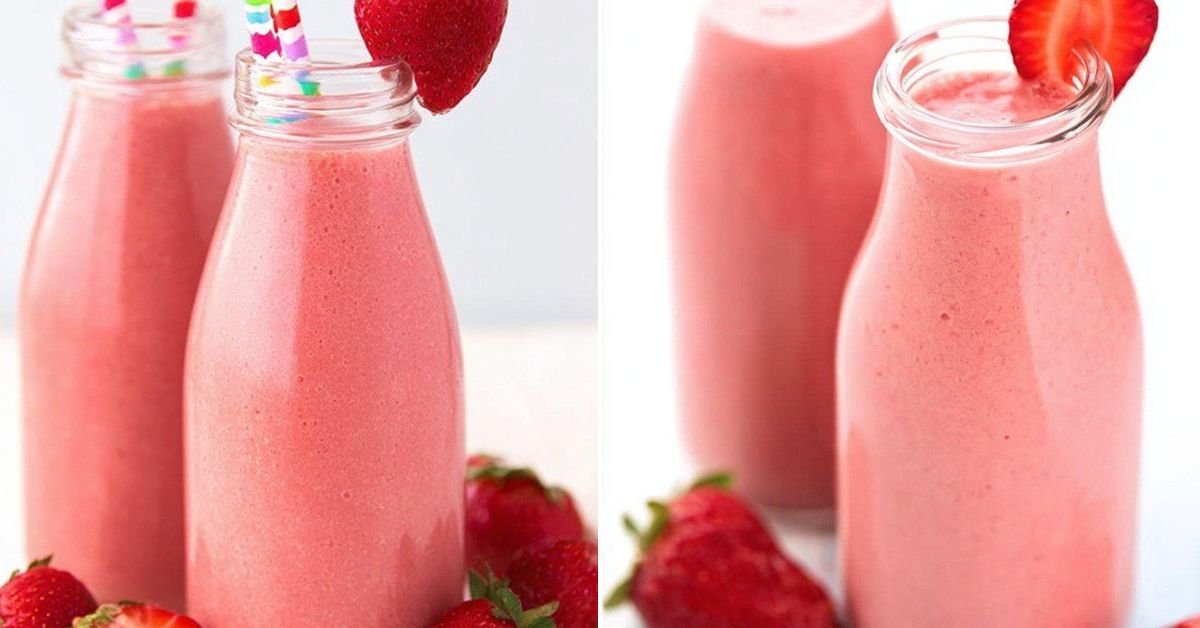 - The smoothie uses simple ingredients like strawberries, bananas, and milk.