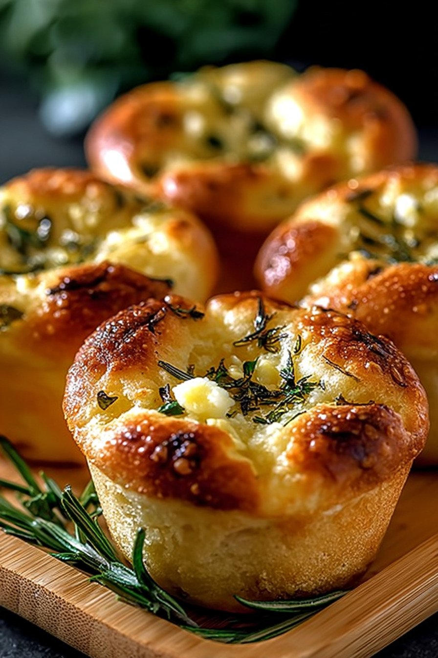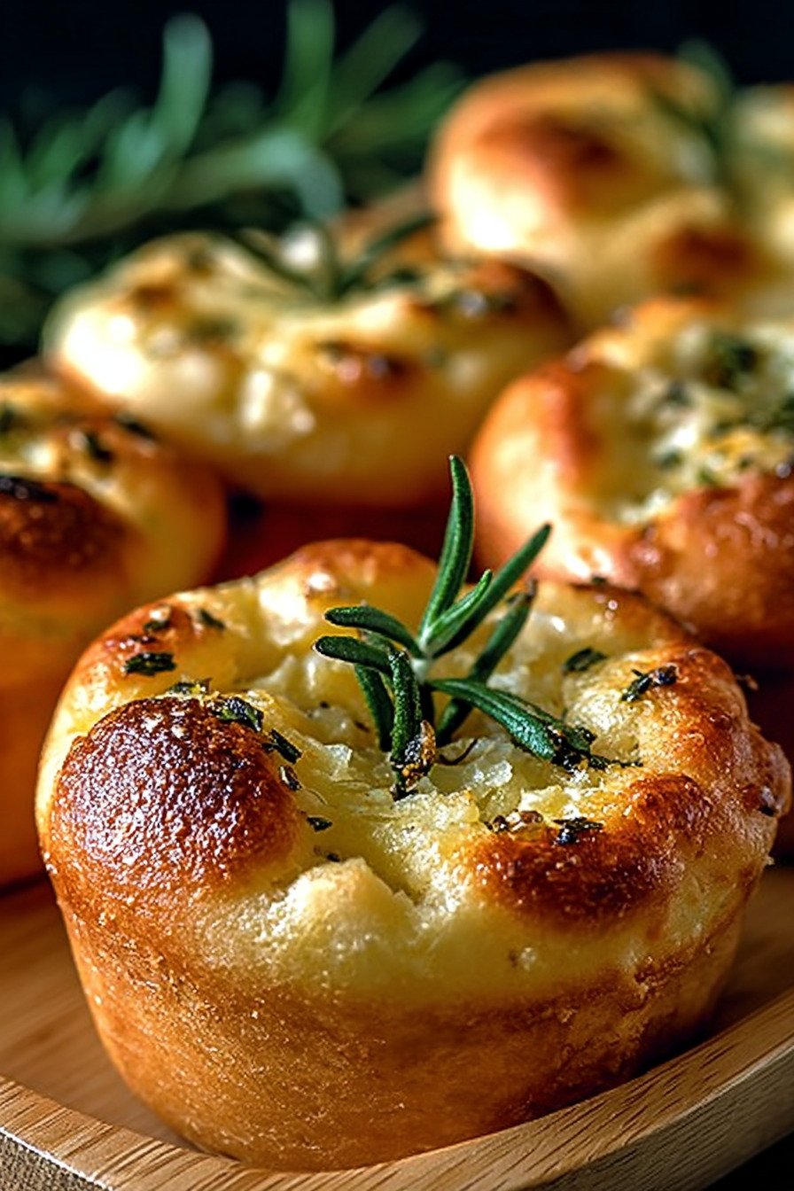 Garlic Rosemary Focaccia Muffins – Easy Savory Bread Muffin Appetizer