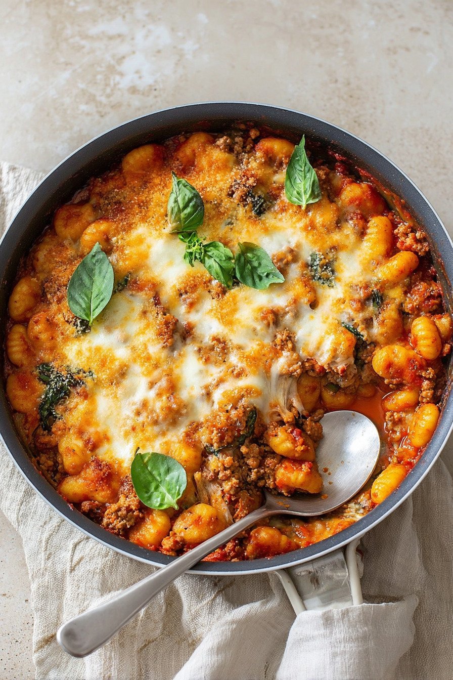 Ground turkey Lean meat takes on color and flavor. I break it into small bits so each bite feels even. It keeps the bake light and still hearty. gnocchi with ground turkey stays tender and rich.