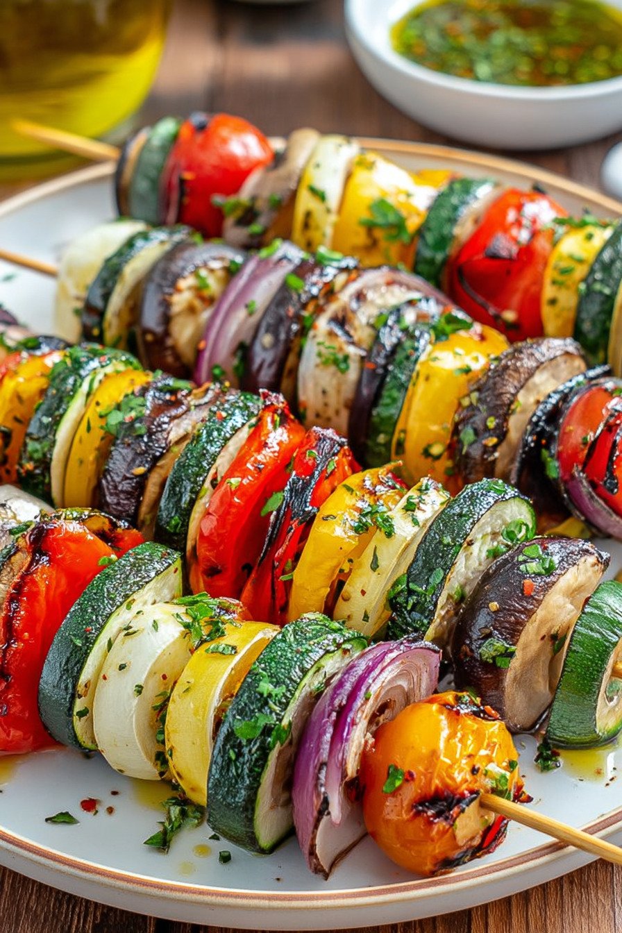 For best results, assemble the skewers just before grilling to maintain the texture and freshness of the vegetables.