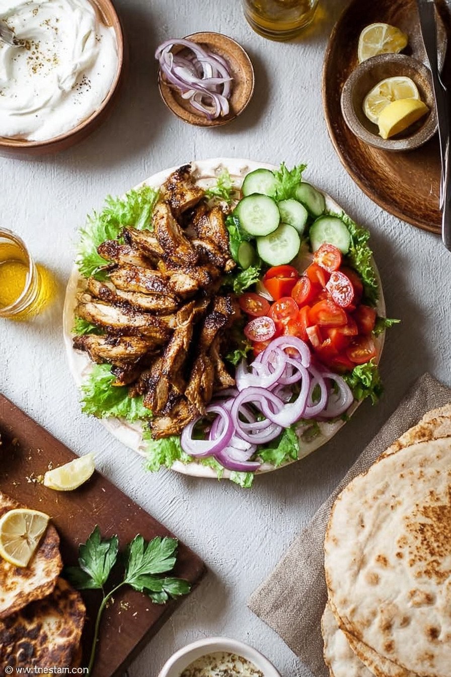 Fresh Vegetables and Sauce Toppings like cucumber, tomato, onion, and a creamy yogurt or garlic sauce add freshness, crunch, and contrast. They turn the cooked chicken into a complete shawarma recipe chicken meal that feels colorful, hearty, and satisfying.