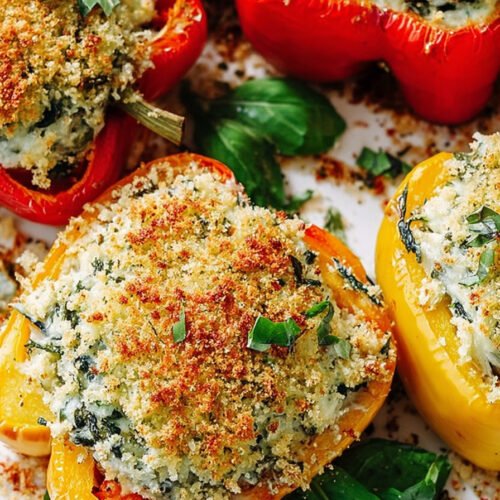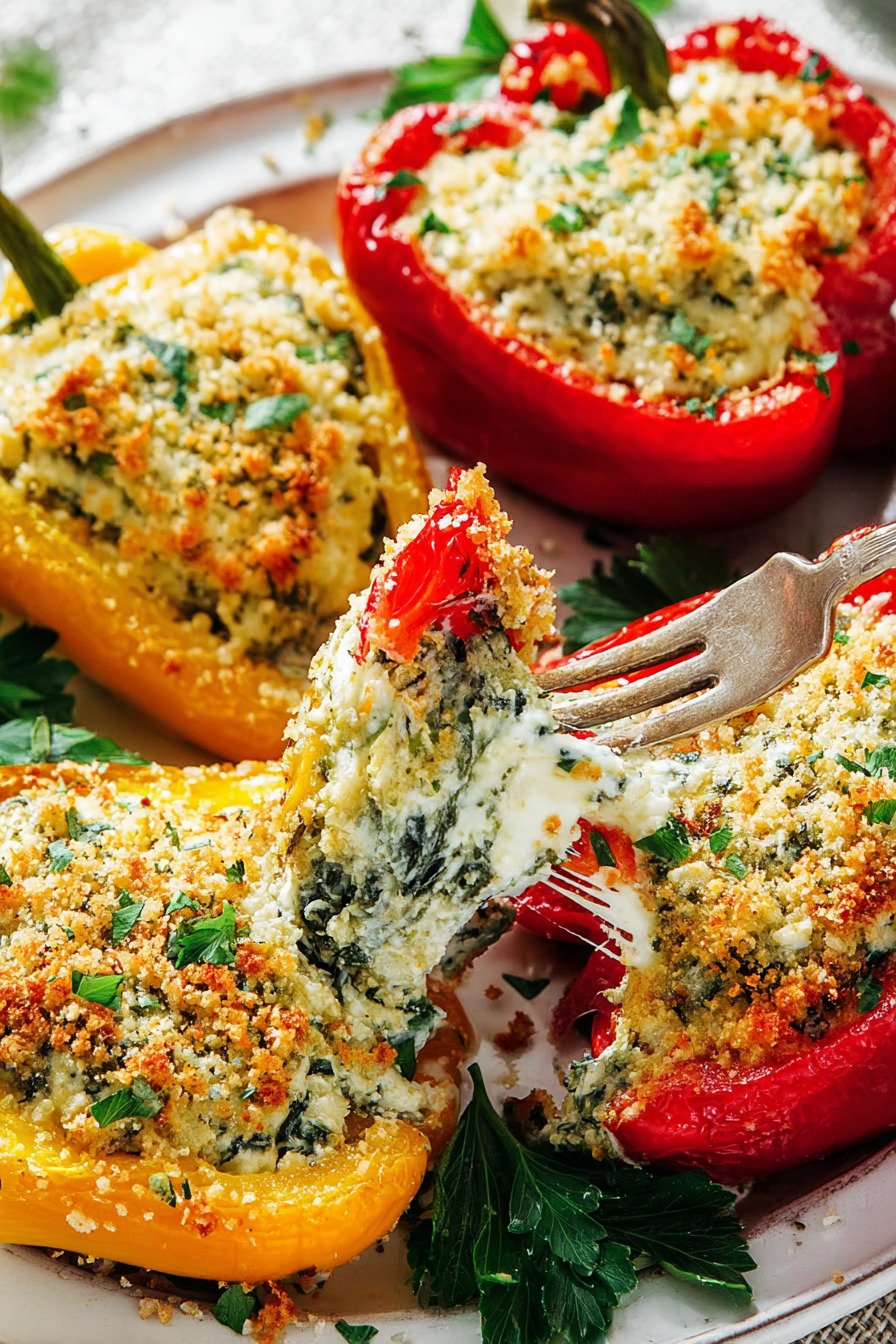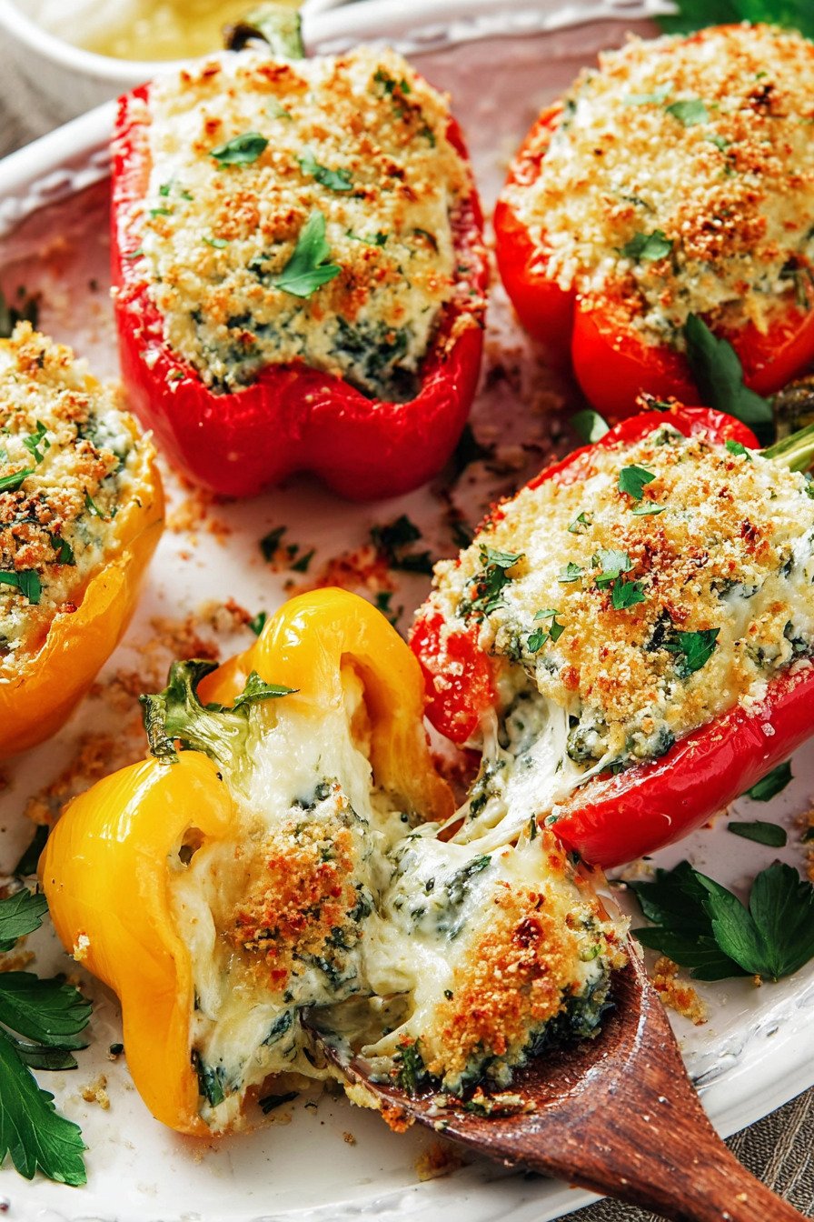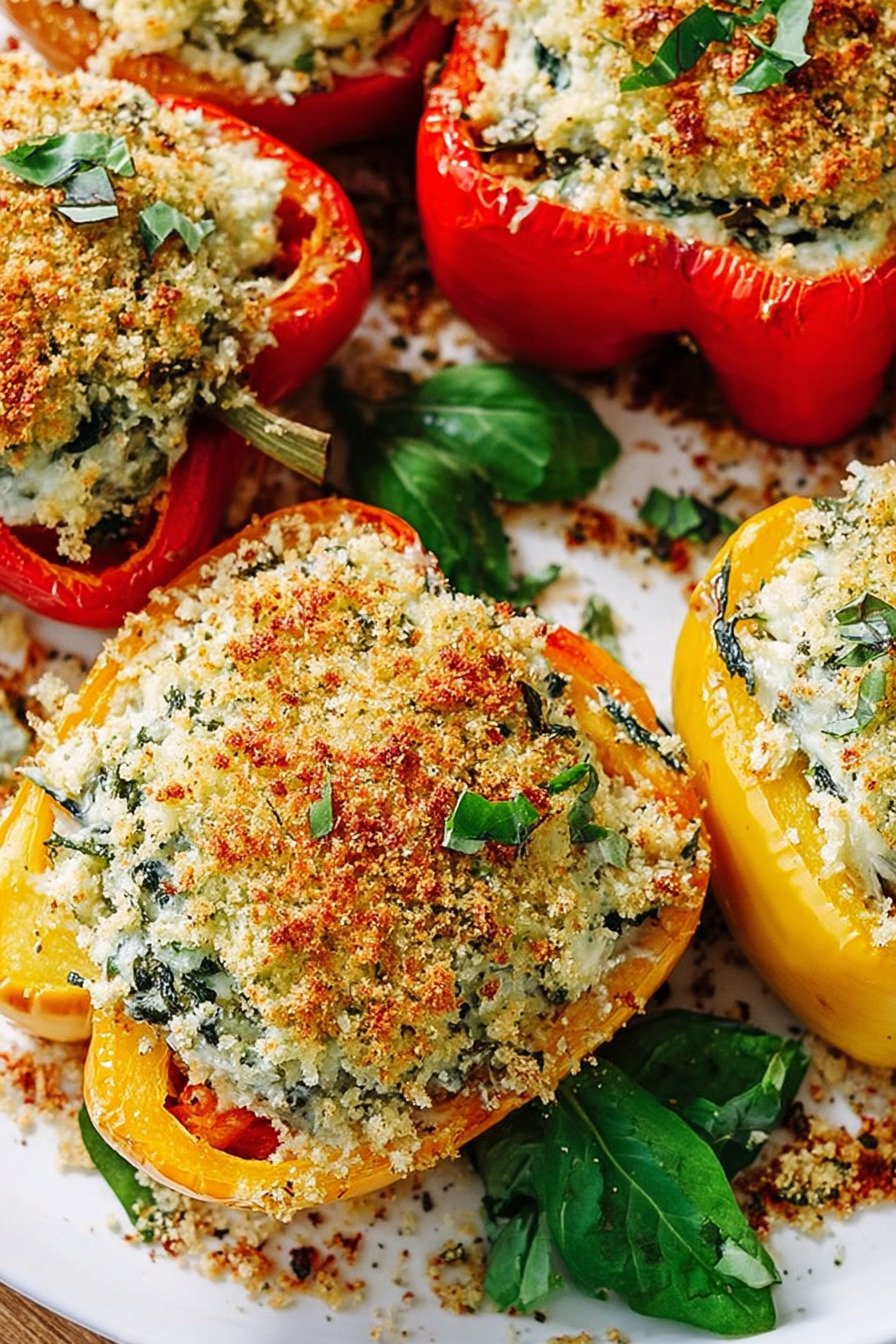 To reheat, place the peppers in the oven at 350°F (175°C) for about 10 minutes until warmed through. This helps restore the slightly crisp topping while keeping the ricotta filling creamy.