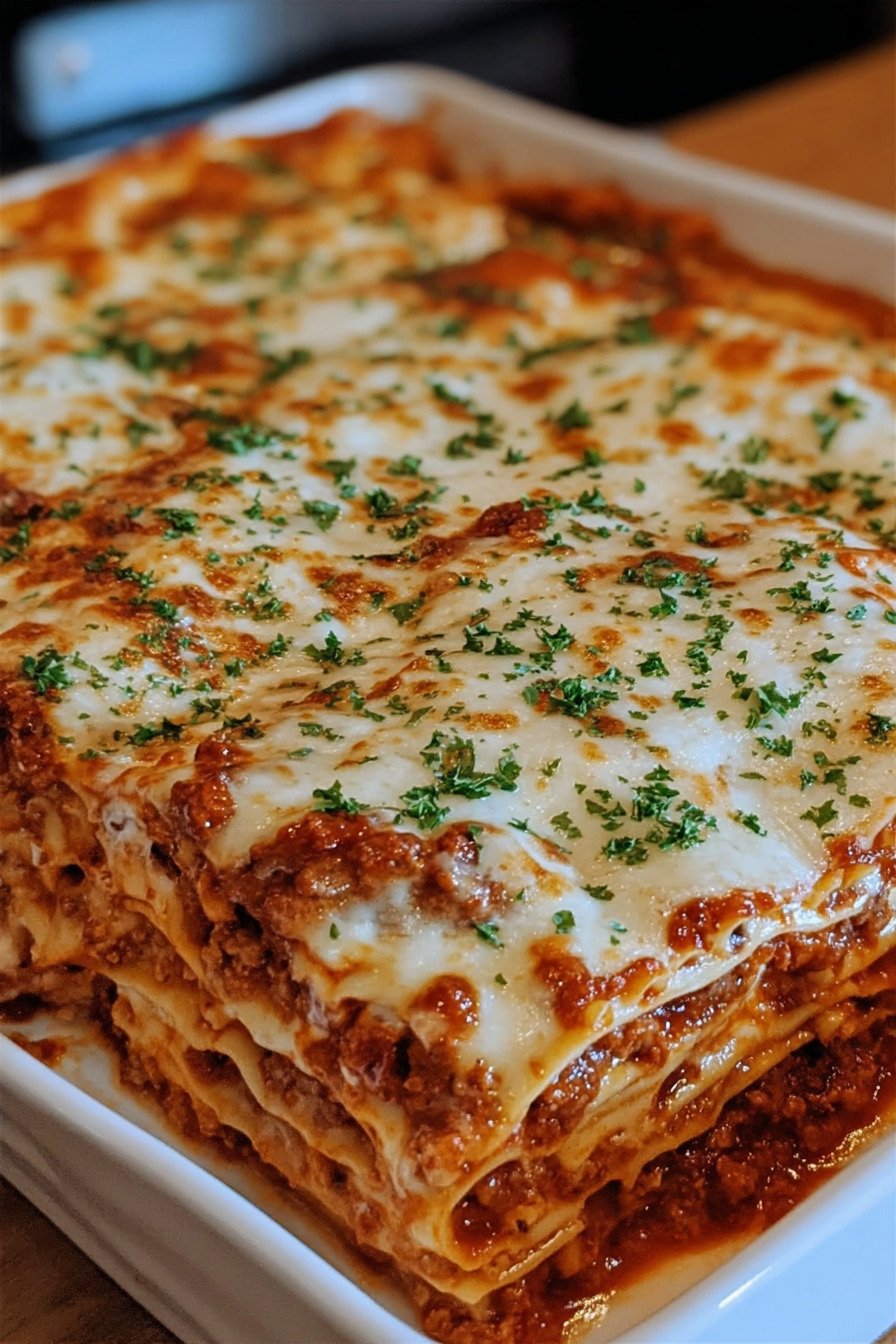 This lasagna recipe brings rich layers, deep flavor, and real comfort to your table. I build it with slow simmered meat sauce, creamy ricotta, and plenty of mozzarella that melts into golden bubbles. We let it rest before slicing so every layer holds its shape and looks as good as it tastes.