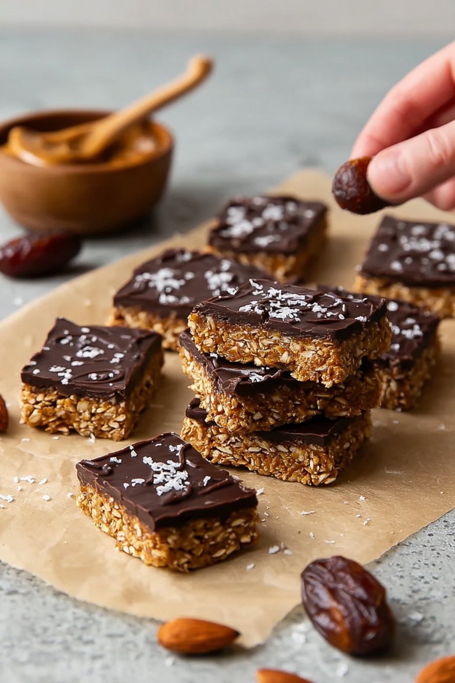 Step 6 Spread melted chocolate if you want a top. Add a tiny pinch of flaky salt. Chill until firm then slice into twelve bars.
