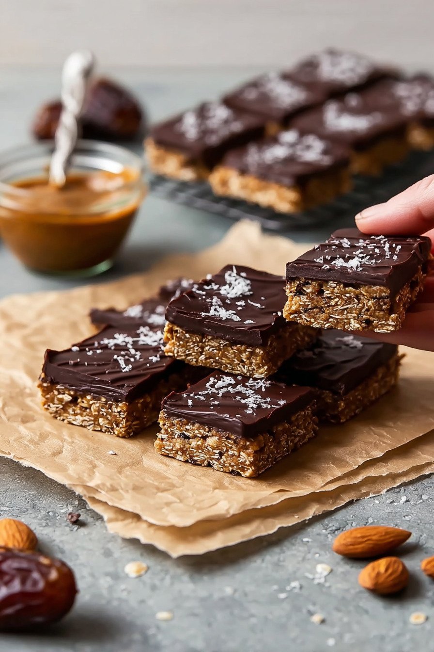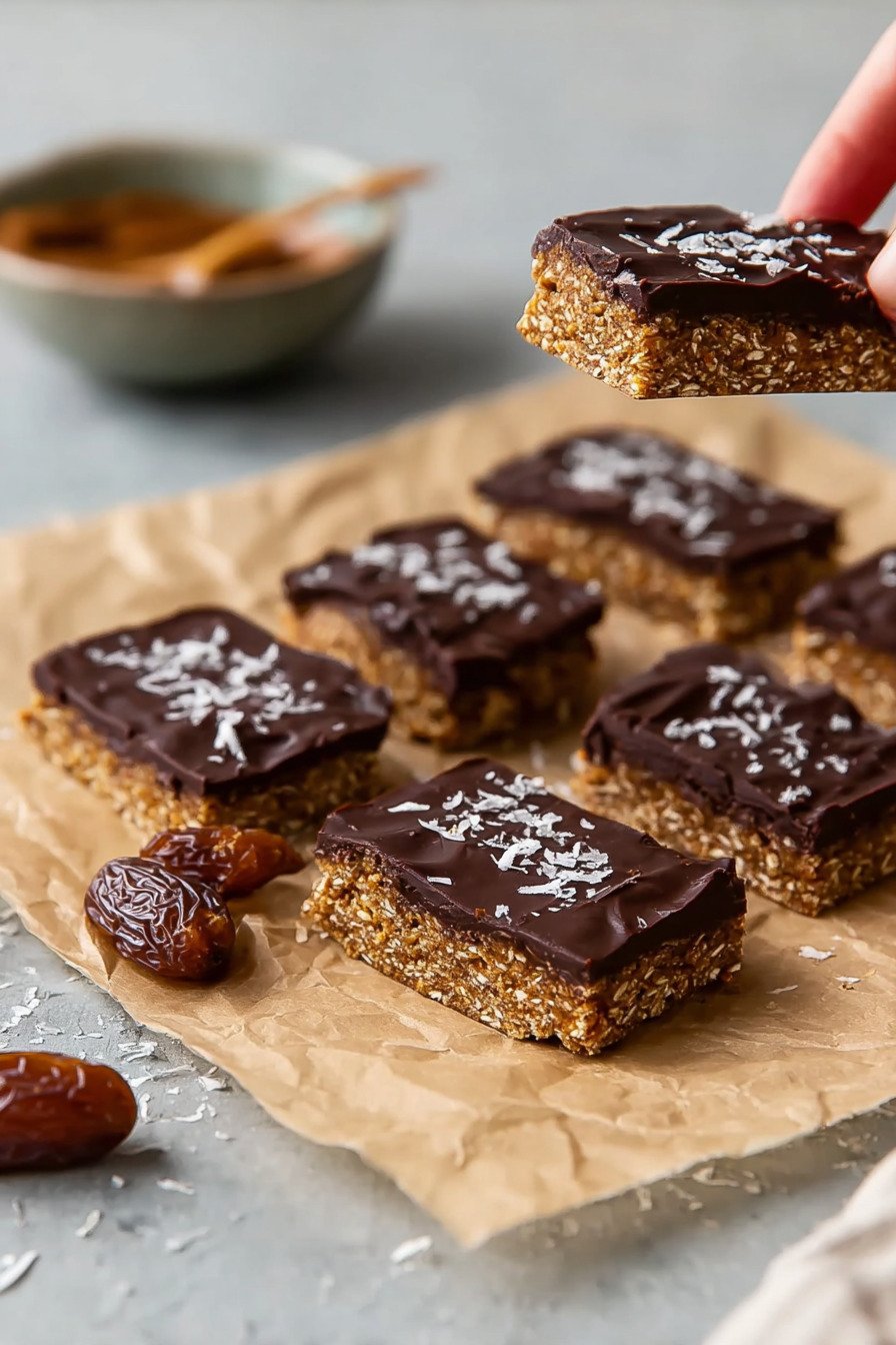 Store bars in a tight box in the fridge. The chill keeps the texture firm and the cut edges neat. They stay fresh for a week.