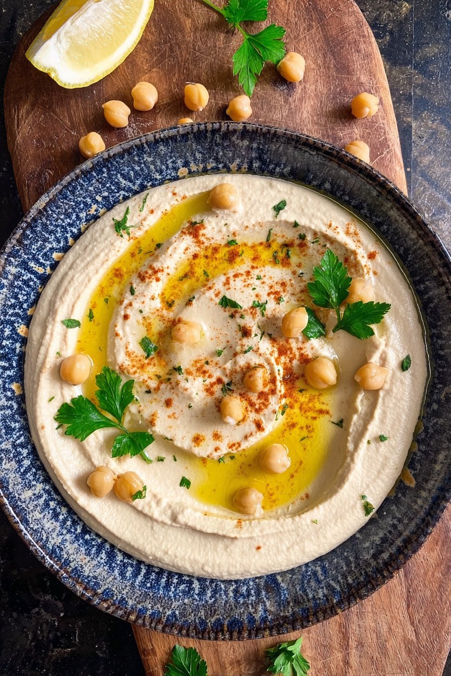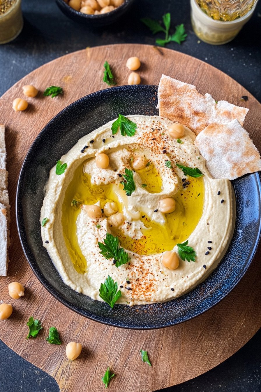 For parties I prepare two bowls. One plain and one with a carrot ribbon on top. Guests love color and choice. This easy hummus recipe scales well and holds up on a grazing board.