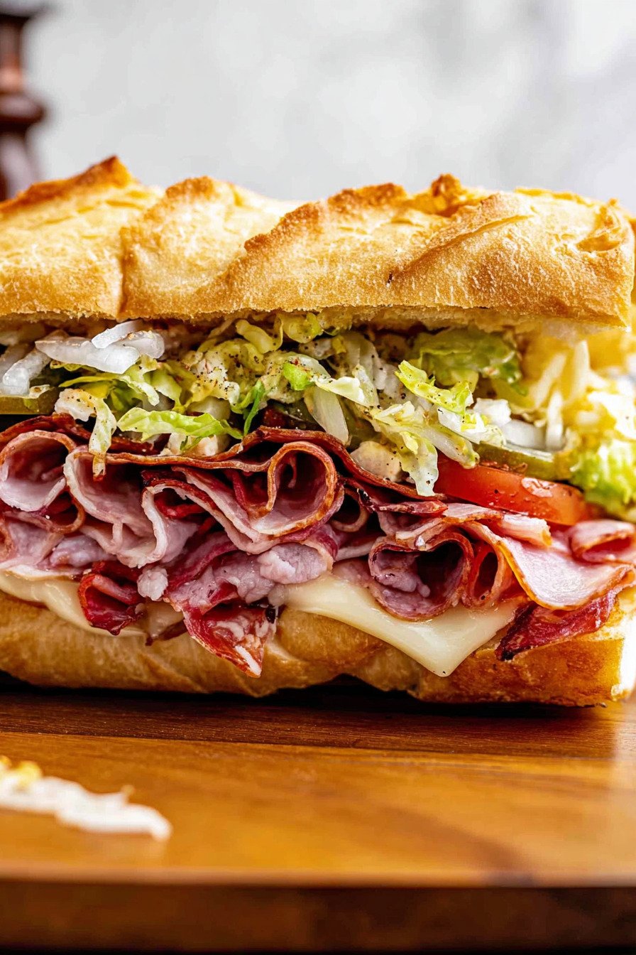 Deli Meats A mix of ham, salami, and pepperoni adds rich, savory depth, similar to what you’d find in classic italian grinder sandwich recipes.