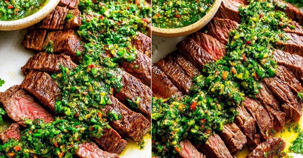 If you love bold flavors and simple cooking methods, this Chimichurri Steak will quickly become one of your favorite Grilling Recipes. Perfect for backyard cookouts or weeknight dinners, this dish combines juicy grilled steak with a vibrant Chimichurri sauce recipe made from fresh herbs, garlic, and olive oil. The result is a flavorful steak that tastes restaurant-quality but is surprisingly easy to prepare at home. Many Steak marinade recipes rely on heavy sauces or complicated ingredients, but this recipe keeps things fresh and simple. The herb-packed chimichurri acts as both a marinade and finishing sauce, making it ideal for Easy grilling recipes when you want something fast yet impressive. It also works beautifully for Quick steak recipes when time is limited but flavor still matters. Inspired by traditional Argentinian steak recipes, this dish celebrates perfectly grilled beef topped with bright herbs and garlic. The balance of acidity, herbs, and smoky grilled flavor creates the ultimate grilled steak with herbs experience that steak lovers can’t resist. Whether you’re hosting friends or just craving a satisfying meal, this recipe delivers incredible flavor with minimal effort.
