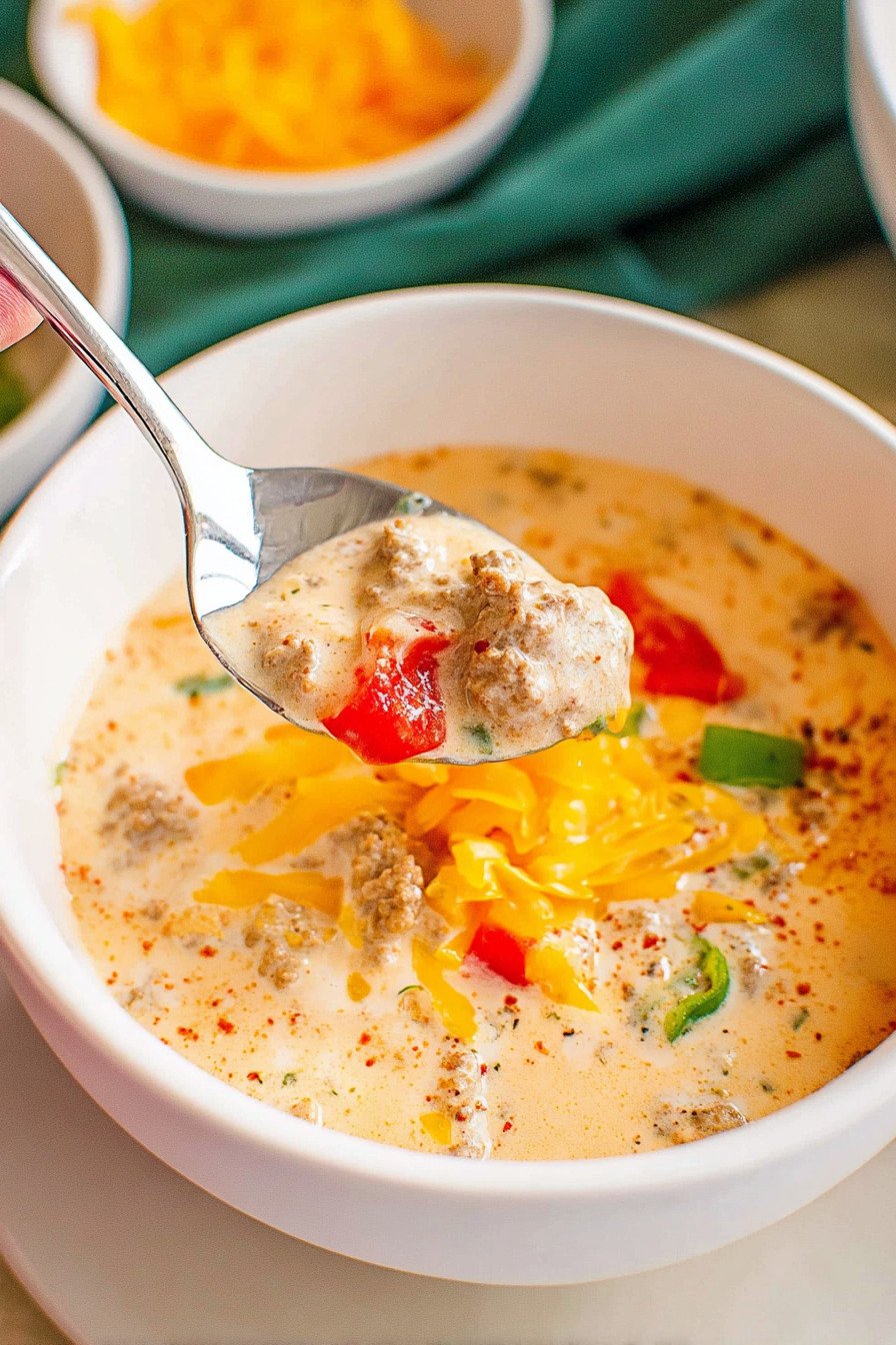 9) Keto Cheeseburger Soup