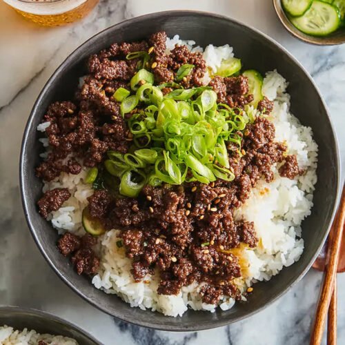 Sometimes you just need dinner to come together fast, and that’s where this Korean Beef Bowl saves the day. When I say quick ground beef recipes, I mean it – this is ready in about 20 minutes, and it tastes like you’ve put way more effort in. I’ve made it on nights when the fridge looks empty, and it still somehow feels like a real meal, not a sad last-minute scramble. The sauce is a perfect mix of salty, sweet, and garlicky – the kind of flavor combo that makes you want to lick the bowl clean. Honestly, I’ve caught myself spooning bites straight from the skillet while waiting for the rice to finish cooking. Ground beef recipes like this one remind me that dinner doesn’t have to be fancy to be good. With just a few pantry staples, you can create something comforting and satisfying. If you’ve been scrolling for recipes ground beef ideas that don’t feel boring, this is it. It’s one of my favorite ground beef easy recipes to make when I don’t want to think too hard but still want something delicious. Whether you call it recipe ground beef magic or just easy ground beef recipes done right, this dish belongs in your weekly lineup.